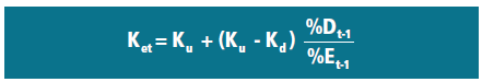 Ahora calcularíamos el coste de capital propio mediante la relación que existe entre la rentabilidad de la empresa sin deuda4 Ku y la rentabilidad del capital propio Ke,5 tomando como coste de la deuda Kd la rentabilidad del activo libre de riesgo.
