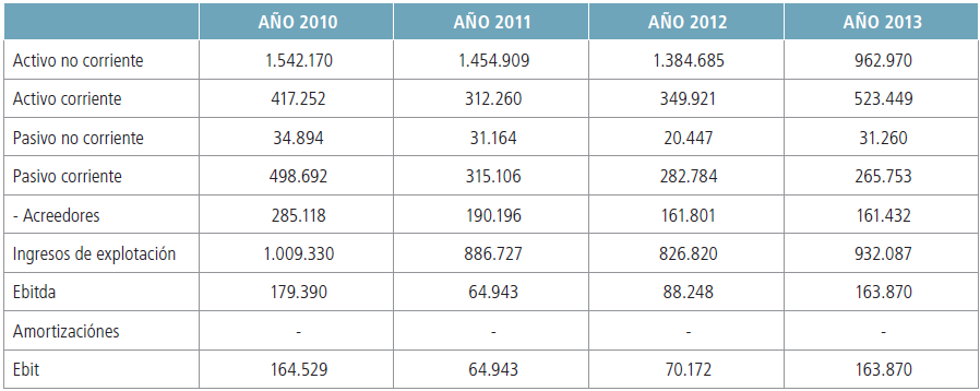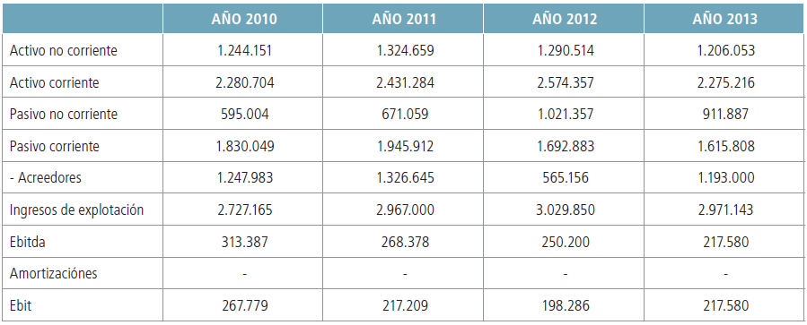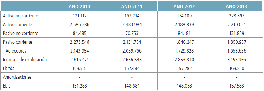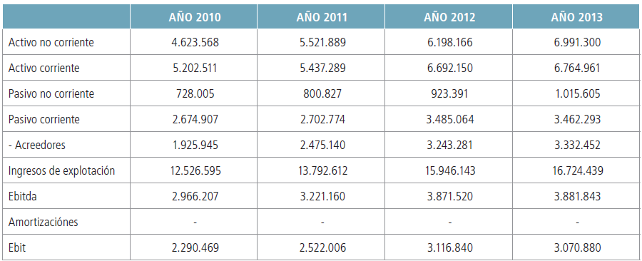 Para hallar las distintas partidas que integran la cuenta de explotación hemos analizado la evolución de las mismas en un periodo de cuatro años (2011- 2014), para posteriormente determinar los valores previsionales.