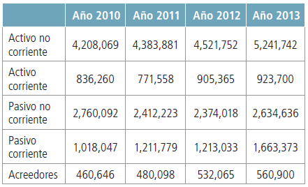 De manera análoga, se calculan para los cuatro años disponibles las ratios: