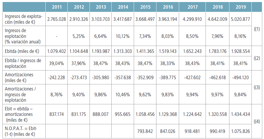 En la Tabla 3 se puede ver el cálculo del RESULTADO DE EXPLOTACIÓN después de impuestos (N.O.P.A.T.) de la empresa AMADEUS.