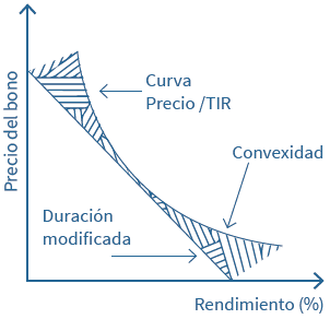 La convexidad de un bono aumenta a medida que aumenta su duración. Gráficamente, los factores y relaciones señalados anteriormente, se muestran en la figura 1: