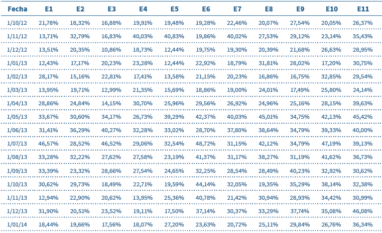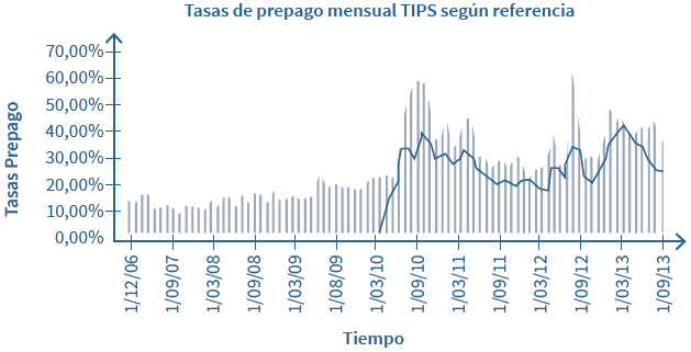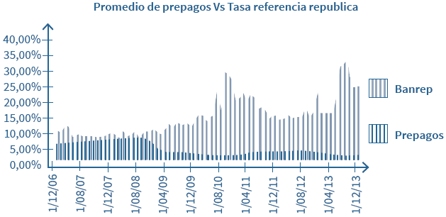 Debido a lo anterior, a continuación se realiza un análisis del comportamiento del prepago de los créditos hipotecarios en Colombia, usando la serie completa de prepagos mensuales para todas las emisiones vigentes de TIPS desde el 2006 hasta enero de 2014. Ver tabla 1 y 2, figura 2 y 3.