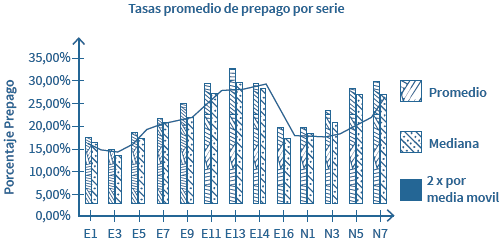 La relación que tienen estos dos componentes es inversa, es decir, en momentos en donde la economía experimenta ciclos expansivos por medio de reducciones de las tasas de referencia, el nivel de prepagos en general se incrementa notablemente; por contrario, cuando se intenta contraer la economía por medio de incrementos en la tasa de referencia, el nivel de prepagos se contrae también de manera notoria y cuando las tasas de referencia se están reduciendo, la dinámica de la demanda por crédito se incrementa, pues se tiene la posibilidad de tomar crédito más barato y, a su vez, refinanciar a tasas más bajas que las originalmente pactadas en los créditos.