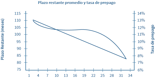 Plazo Restante Promedio. A partir del estudio realizado por la Titularizadora en Colombia, se logró determinar que la tasa de prepago de los créditos hipotecarios tenía una relación directa con el plazo al vencimiento de los créditos, es decir, a mayor plazo al vencimiento de los créditos hipotecarios, el nivel de prepago por parte de las personas naturales era mayor.