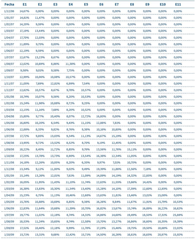 Se define el portafolio modelo de TIPS, con el cual se realiza la simulación de la cobertura. Ver tablas 3 y 4.