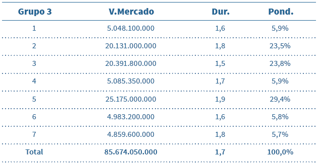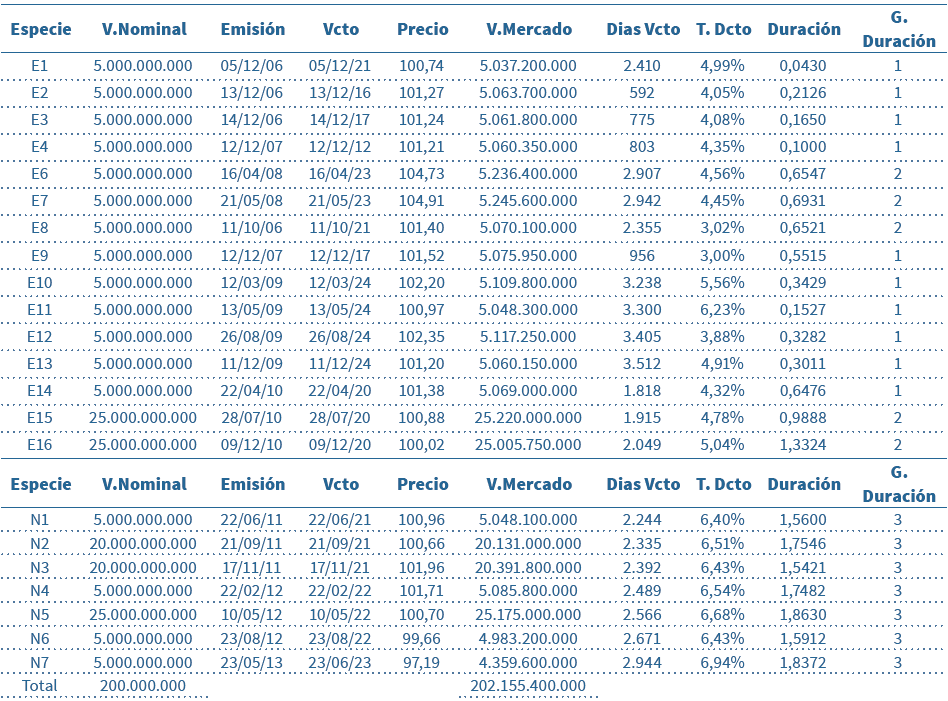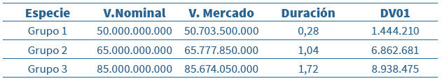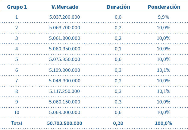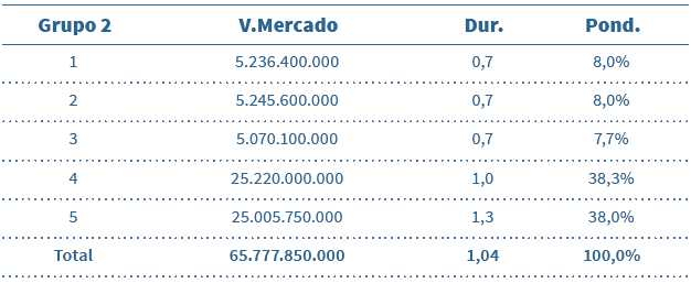 De la tabla 5, es importante destacar que, toda vez que el objetivo es tratar de hacer la aproximación más exacta basada en el concepto de duración, al conformar los valores nominales de los títulos a invertir los criterios fueron: