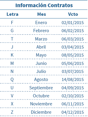 Para la conformación de los nemotécnicos, la BVC (Bolsa de Valores de Colombia) ha determinado diferentes letras que han sido adjudicadas para representar cada uno de los meses del año. Ver tablas 10 y 11.