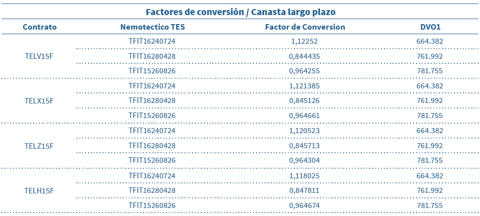 TEScon vencimeinto en agosto de 2026, canasta largo plazo.