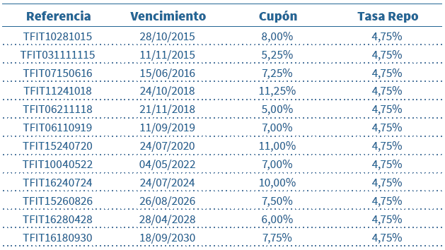 TES con vencimiento en junio de 2016, canasta corto plazo.