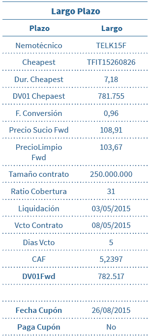 Es un instrumento derivado que sirve para realizar cobertura, especulación o arbitraje sobre las diferentes referencias de TES que existen en Colombia. El subyacente sobre el cual está fundado el contrato es un bono teórico con cupones estandarizados según su plazo al vencimiento (fijado previamente por la BVC).