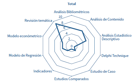 Research methods with a qualitative approach show a tendency towards content analysis. Segmenting this topic, carrying out the analysis of the status of knowledge and research in international business, they have opted for thematic review and bibliometric analysis. As for the first one, there is the work of Yákara and of 512 relevant subjects in high-impact articles, uses content analysis. Cano and Baena (2015), conducted a literature review in recognized and high impact databases, using categories such as: functionality, commercial tools, complexity of use and ICT scope, based on international negotiation processes. On the other hand, Al Khattab, Al-Rawad, Alalaya and Al-Khattab (2015), used a document review, identifying a target population of 64 financial entities listed in Amman Stock for the year 2013. For the analysis of Networks, Pereira, Darós, Gonçalo, and Mascarell (2015), developed a review of the state of knowledge around the Network concept of in terms of: innovation, knowledge management, institutional structures, internationalization.