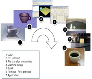 Las máquinas de fabricación aditiva, realizan un proceso genérico, que está compuesto de (7) siete actividades secuenciales, desde su diseño hasta la obtención de la pieza para ser utilizada, estos pasos se describen a continuación (figura 3):