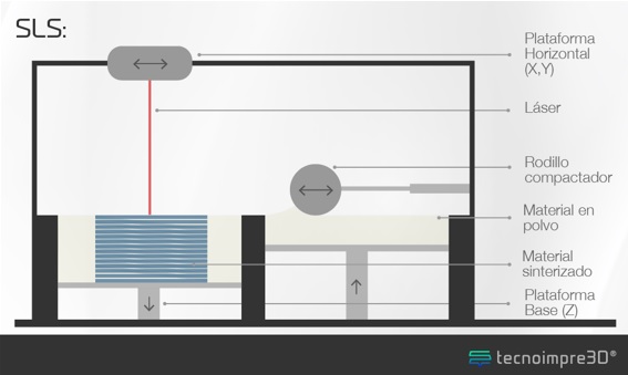 Al respecto, la Sinterización selectiva por láser (SLS): utiliza el láser para fundir material de alimentación en polvo, en el objeto deseado. Siendo lo que más se estableció en contextos profesionales e industriales, ya que también permite la impresión de materiales a base de metal. (Heutger, & Kückelhaus, 2016).
