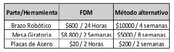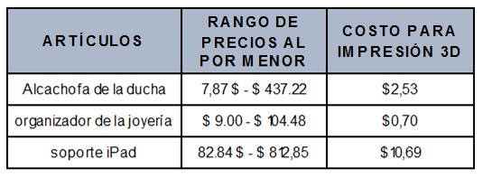 Al respecto, en las tablas 1 y 2, se observa la economía de la impresión en 3D.
