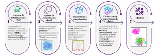 La metodología sistemática basada en la búsqueda bibliográfica de publicaciones y citaciones acoplada a la herramienta de visualización y análisis de redes Gephi es eficaz en la identificación de analogías entre temáticas de estudio y su segregación categórica. El enfoque holístico propuesto en este estudio, mediante la articulación de los resultados de búsqueda y análisis de redes con el software Tree of Science, provee una categorización jerárquica del material bibliográfico más influyente en el tema de estudio, desde sus inicios hasta la actualidad. El análisis bibliométrico abordado mediante esta metodología proporciona una perspectiva general, estructurada y novedosa que favorece la síntesis de la evolución del tema de estudio a través del tiempo y de aplicabilidad en estudios bibliométricos en otras ramas del conocimiento.