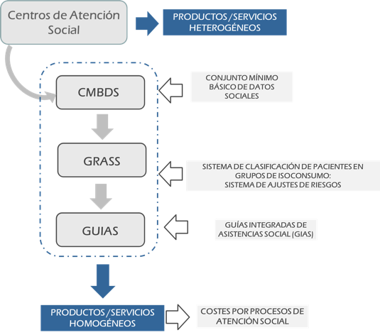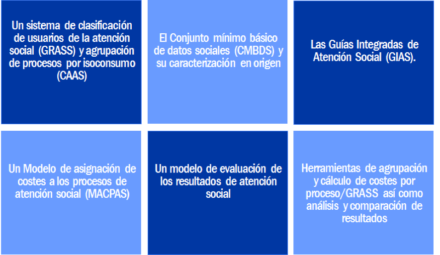 For that, it is necessary to carry out some Integrated Social Care Guidelines [Guías Integradas de Atención Social, GIAS] in order to standardize the processes, and a new Model of Cost Assignment to the Social Care Processes [Modelo de Asignación de Costes a los Procesos de Atención Social, MacPAC], in order to define a Tool for the Evaluation of Results in Social Care [Herramienta para la Evaluación de Resultados en Atención Social, HERAS].
