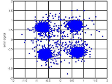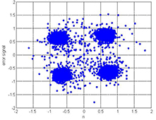The last experiment was performed by implementing a channel equalizer with the ARγ algorithm using the statistics of the CMA, which include the moments of order 4 and 2 of the transmitted signal. The results show that with the following values: Gamma = 0.03; Alpha = 5.71, and M1 = 5.8, a minimal squared error of 0.0014 is obtained. This last value represents a better performance relative to the Sato and decision algorithms. With these results, we obtained an equalization with values much closer to the transmitted ones with a minimum squared error (see Table 4, Figure 6 and Figure 7).