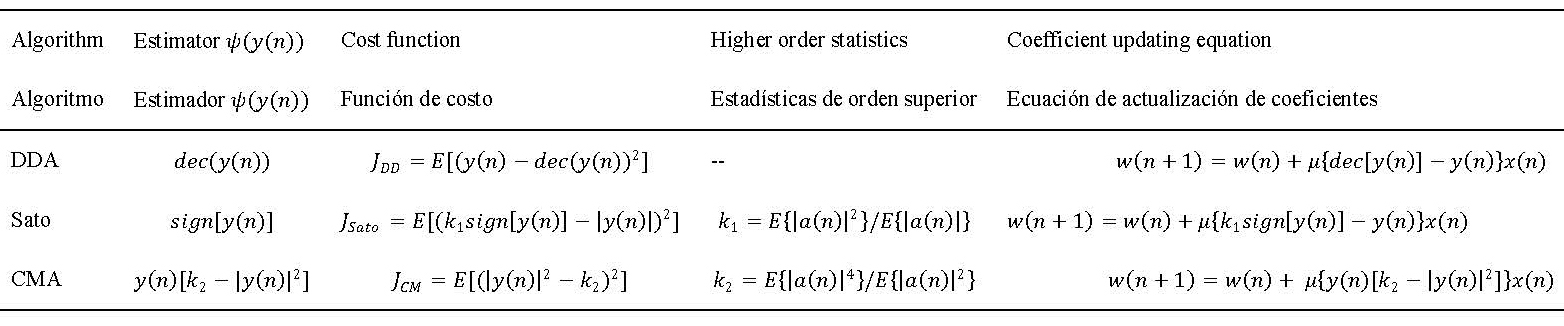 Palabras clave: Ecualización ciega, algoritmos adaptativos, velocidad de convergencia, estimación de datos.