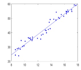 In the ICI field, it is possible to elaborate a model or function (generally a straight line) through this technique from a set A(x,y) ∈ R(n+1), where its elements would be the parameters to use. The model assumes a linear relation between the x,y variablesand it fits in a straight line to the data points (see Figure 7). This relation is expressed through a hypothesis function (Equation 3) to predict a set of outputs (Shanthamallu, Spanias, Tepedelenlioglu, & Stanley, 2017).