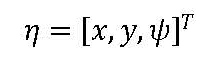 η is the position and orientation vector with coordinates in the reference system fixed in the ground; and