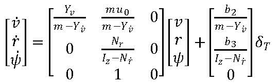 Equation (14) —longitudinal movement— can be uncoupled from the other two —transversal movement and yaw— by supposing that the ship speed and the thrust are constant.