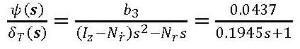 The second-order Nomoto model is a widely employed alternative for control system developers to obtain low-order models in the lateral subsystem (Fossen, 2011; Moreno, Besada, López, Chaos, Aranda, & Cruz, 2015). From this model, it is possible to obtain the transfer function between the yaw angle and the horizontal deflection angle of the rudder as follow (23):