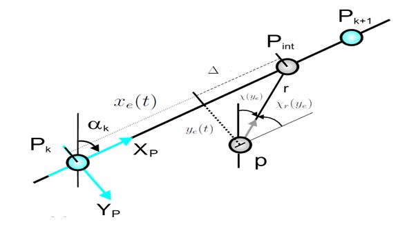 χr(ye) is a correction angle that ensures the vehicle speed is pointed to the path where the boat goes; and,