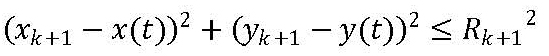To consider that a point in the road has been surpassed, we propose a procedure to do it, which is associated to an acceptance circle established for each point in the road. Its radio would be R(k+1) > 0 for the k+1 point; hence, the criterium to change the vehicle direction towards the next point is defined by equation (35):