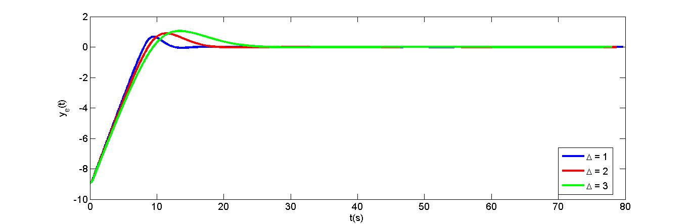 The result of the performed tests is presented in Figure 6, where the reader might see that, for the elevated values of the sea current speeds (i.e., ye(t)), the error grows; nonetheless, the integral action in all the cases makes it to tend to zero.