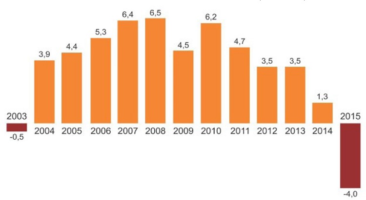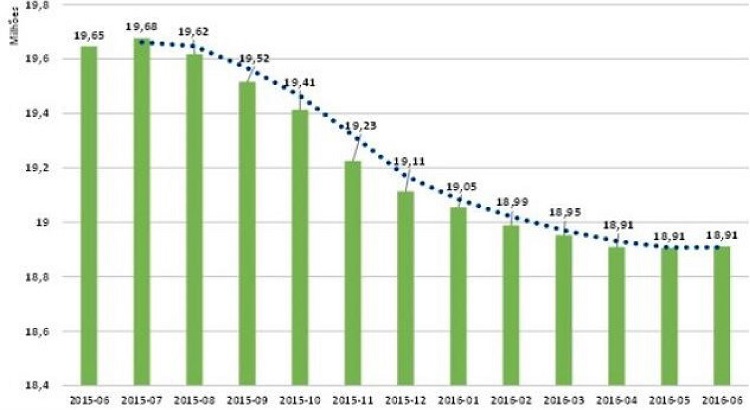 Em razão da redução geral da renda e do pronunciado crescimento nas taxas de desemprego entre os anos de 2015 e 2016 e da respectiva intensificação da recessão brasileira, a TV por assinatura sofreu um recuo na sua base nacional de assinantes. Como assinala o Gráfico 8, entre junho de 2015 e junho de 2016, o Brasil perdeu 700 mil assinaturas de TV por assinatura, uma redução de 3,7% na base total de assinantes.