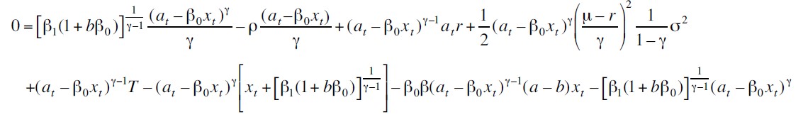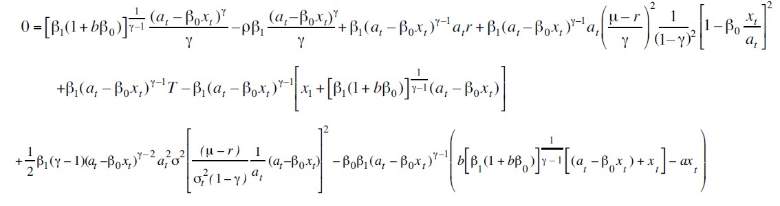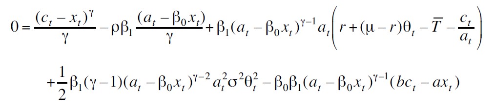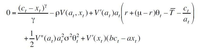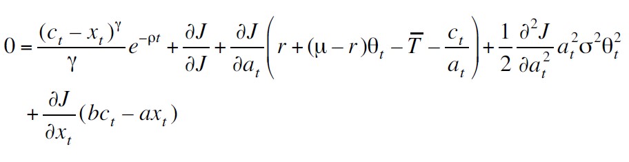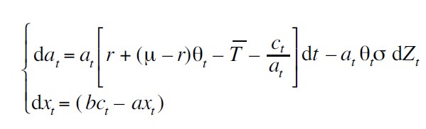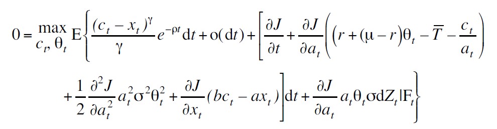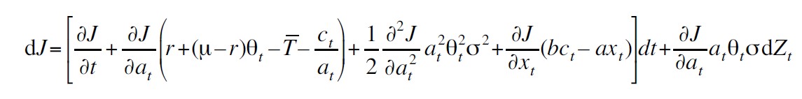 Posteriormente, se aplica el lema de Itô a J considerando el sistema de ecuaciones diferenciales estocásticas dadas por (ver Apéndice 2):