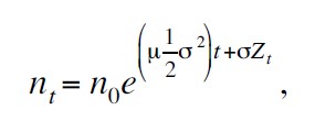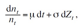 σ es la desviación estándar instantánea (volatilidad) de la tasa de crecimiento del salario y Ztes movimiento browniano (una variable aleatoria con media 0 y varianza proporcional a t). De esta manera, la ecuación diferencial estocástica que conduce al salario, nt , está dada por:
