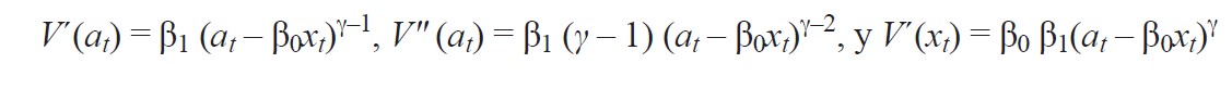 En el modelo propuesto las decisiones del vendedor dependen de la información al tiempo t, el consumo debe ser mayor al hábito ct ≥ xt no puede haber un consumo cero y la riqueza debe ser mayor que cero, at ≥ 0.