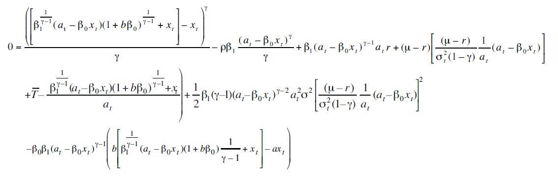 se tiene que se puede eliminar ( at – b0xt )γ de todos los términos de (14) y se obtiene