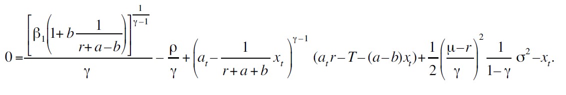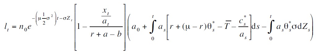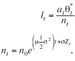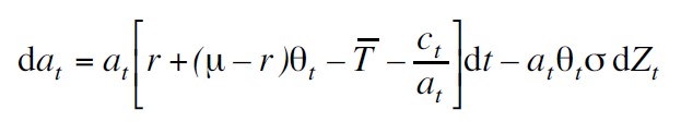 Si hay un excedente; en caso contrario Dt = 0. El ingreso, nt , se supone que es conducido por un movimiento geométrico browniano, es decir,