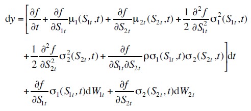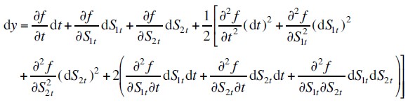 Cov ( d W1t, d W2t) = ρd t (B2) Si se define la función y = f (S1t, S2t, t) , la expansión de serie de Taylor de