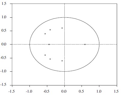 Otra característica importante es la estabilidad del VAR, la que se puede observar mediante el valor de sus raíces características. Con esto se asegura que ante choques de corto plazo las variables regresen a su trayectoria de equilibrio de largo plazo. Si no se diera el caso, se tendría un modelo explosivo, lo que no tendría sentido económico. Para verificar la estabilidad se deben analizar las raíces, las cuales tienen que ser menores a 1 en su valor absoluto. En el cuadro 4 se puede observar que el rezago óptimo para el VAR es 5.