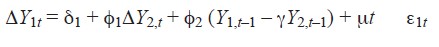 El término ( Y1,t–1 – γY2,t–1 ) es conocido como término de corrección