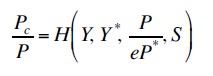 Pc, P*c son el precio de los commodities en moneda doméstica y del resto del mundo.