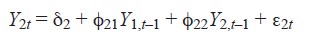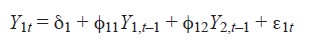 Con la idea de simplificar la exposición teórica se utiliza un Modelo VAR Bivariado de Primer Orden presentando en Brooks (2014):