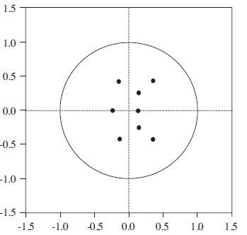 es que todas las raíces características del polinomio del VAR presenten raíces que sean en módulo menores a uno para garantizar la estabilidad. En el gráfico siguiente puede observarse que el VAR planteado para el periodo 1990-2003 satisface dicha condición.