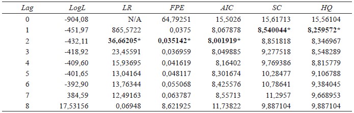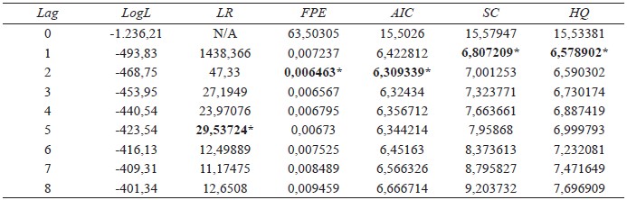 AIC: Akaike information criterion; SC: Schwarz information criterion; HQ: Hannan-Quinn information criterion