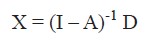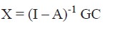 Para el análisis interindustrial de insumo-producto retomamos el trabajo de Arriaga y González (2014) con aplicaciones de esta metodología al gasto de gobierno en inversión para la conservación y preservación del patrimonio histórico en el cual utiliza el modelo abierto de Leontief y expresa en forma matricial el sistema de ecuaciones de la siguiente forma: