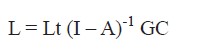 Para tal efecto es necesario definir a la matriz A, como matriz de coeficientes técnicos (aij) producción del insumo del sector económico i para producir una unidad del producto del sector económico j. La matriz B, como matriz de coeficientes directos e indirectos (bij) y que corresponde a la inversa de la matriz identidad menos la matriz de coeficientes técnicos (I-A)-1