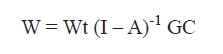 Wt : transpuesta de los coeficientes de remuneraciones (que incluye sueldos y salarios)