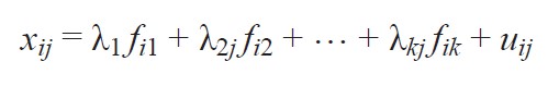 uij = Es un término de error aleatorio conocido como el factor único o factor específico asociado a la j-ésima variable. Explica la variabilidad en xj (incluyendo la varianza ocasionada por errores asociados a la poca fiabilidad en la recolección de datos) que no es compartida con otras variables de la matriz de variables observadas.