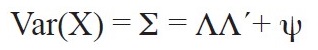 La ecuación (4) representa la llamada identidad fundamental del análisis factorial, donde Σ es la matriz varianza-covarianza teórica de las variables observadas, y Ψ representa la matriz de varianza de los factores únicos o específicos.