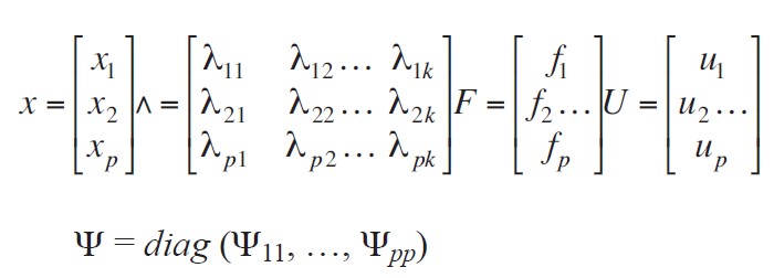 Las variables observadas son únicamente las xj y todos los demás elementos del lado derecho de la ecuación (2) deberán ser estimados partiendo de la matriz de correlaciones entre las variables observadas (Guillermo et al., 2010).