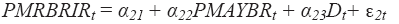 donde: QPBRIt = cantidad producida de brócoli bajo riego en el estado (t); PMRBRIt = precio medio rural real del brócoli bajo riego en el estado($ t-1); PMRRRIR2Lt -2= precio medio rural real de la coliflor producido bajo riego en el estadocon dos años de retraso ($ t-1); PMRCRIRLt-1 = precio medio rural real de la coliflor producida bajo riego en el estado con un año de retraso ($ t-1); PMRLRIR2Lt-2 = precio medio rural real de la lechuga producida bajo riego en el estado con dos años de retraso ($ t-1); PFERTR2Lt-2= precio real del fertilizante con dos años de retraso ($ t-1); PPLAGRt = precio real del plaguicida ($ t-1); PMOGTOR4Lt-4= precio real de la mano de obra en el estado (salario mínimo general promedio en el área geográfica C) con cuatro años de retraso ($ día-1); DARt = disponibilidad de agua para riego en el estado (millones de m3); QPBRILt-1 = cantidad producida de brócoli bajo riego en el estado con un año de retraso (t); PMAYBRt = precio al mayoreo real de brócoli en León, Guanajuato en el año t ($ t-1); CTRANSRt = costo de transporte real ($ t-1); PINTBRt = precio real internacional del brócoli-variable proxy el precio ponderado del brócoli en China e India ($ t-1); Dt = variable de clasificación con cero de 1980 a 1986 que representa el periodo de economía cerrada, y uno de 1987 a 2011 representando la economía abierta.