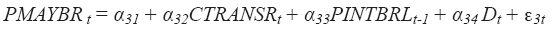 Con base en lo anterior, el modelo de ecuaciones simultáneas de la oferta de brócoli estatal obtenida bajo riego fue conformado por una ecuación de oferta y dos ecuaciones de transmisión de los precios: